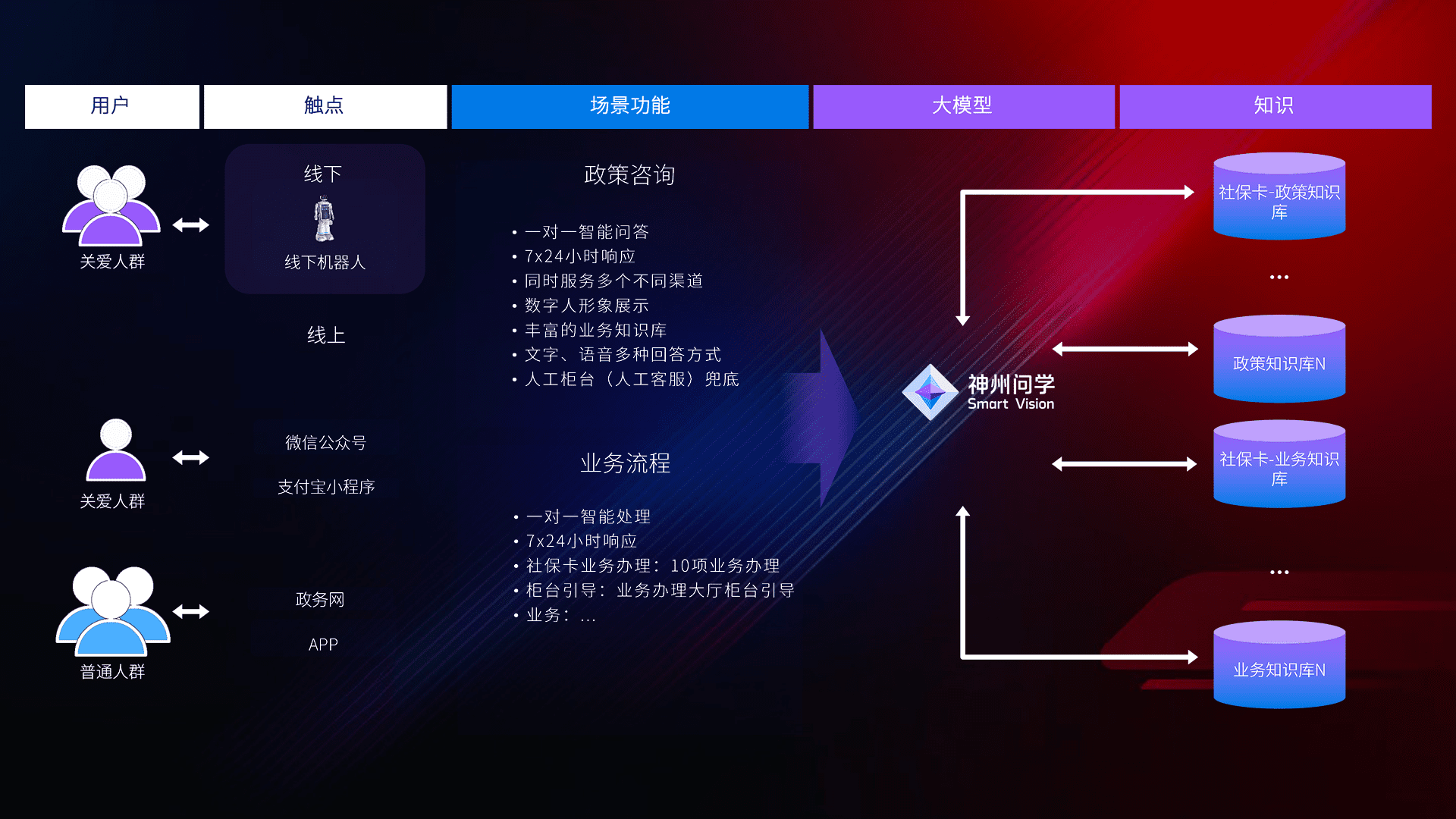 在服务大厅部署客服机器人,,,,在线上应用和小程序配置客服数字人,,,,724小时为群众解答常规问题,,,,客服机器人无法处理的,,,,转现场人工处理。。。
